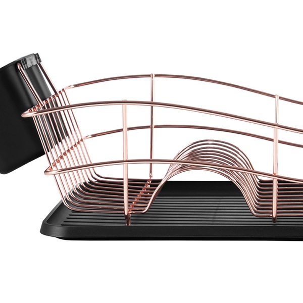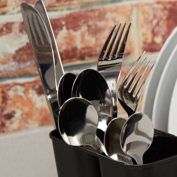 Featuring two removable cutlery holders, this convenient dish rack with drip tray is designed to fit most countertops