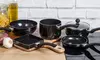 These Tower Essentials pans feature a ceramic, non-stick inner coating and stay-cool handles; suitable for kitchens with limited space