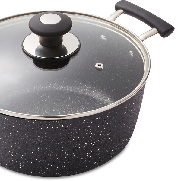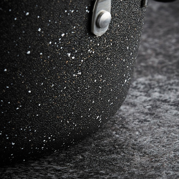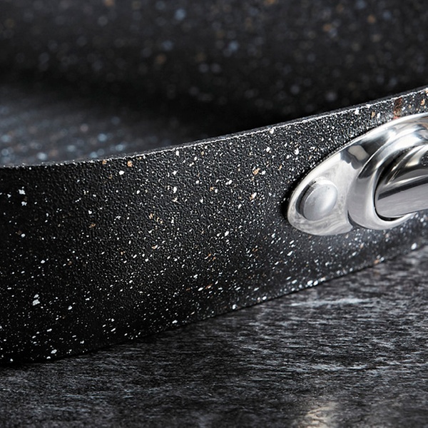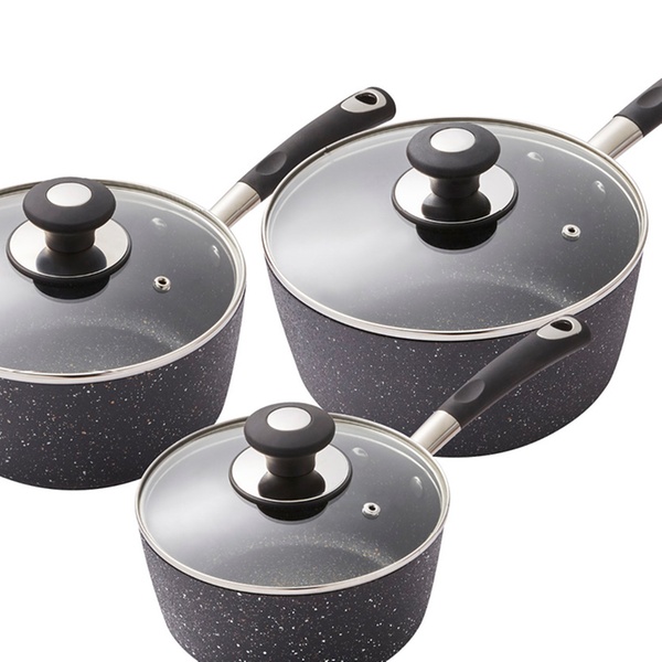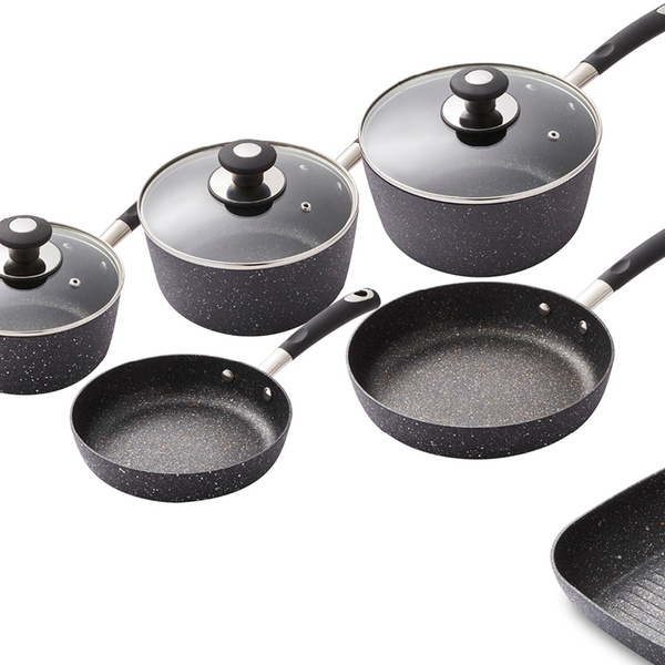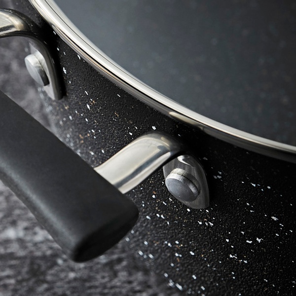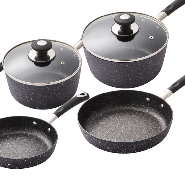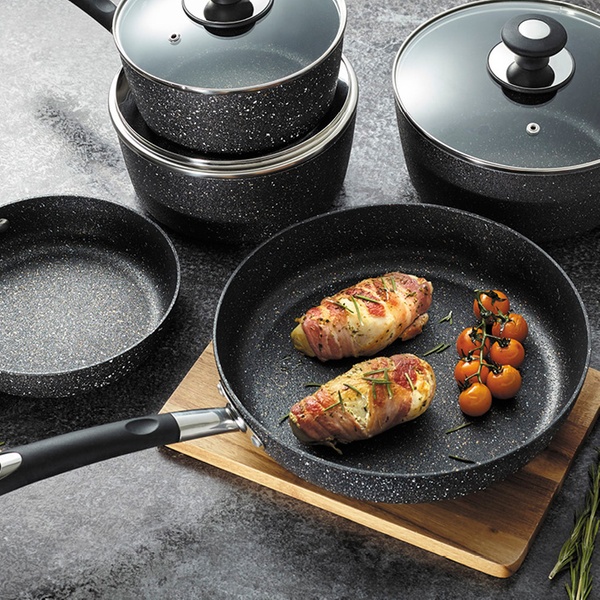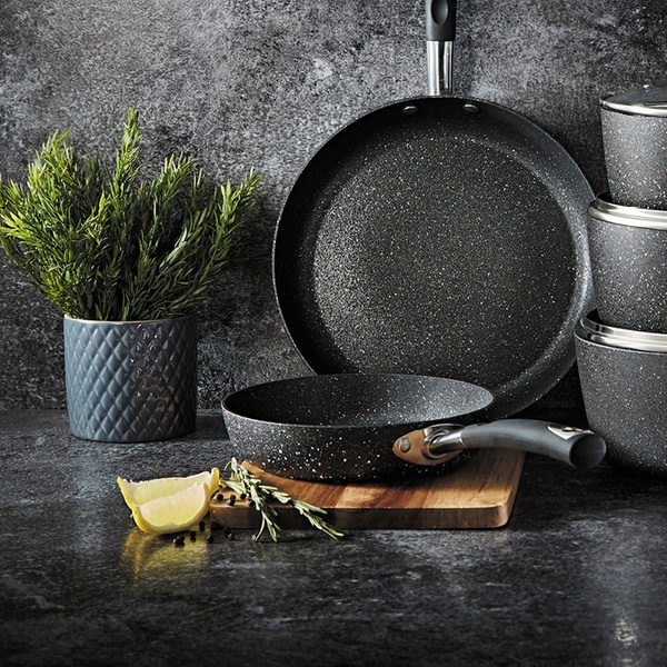 - Pans have a thick forged 3mm aluminium body for faster heat distribution