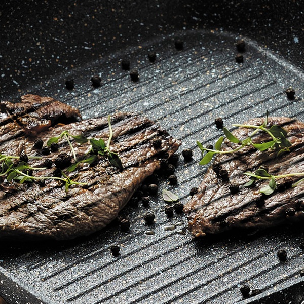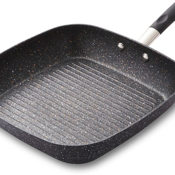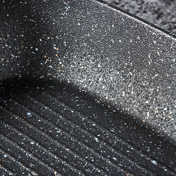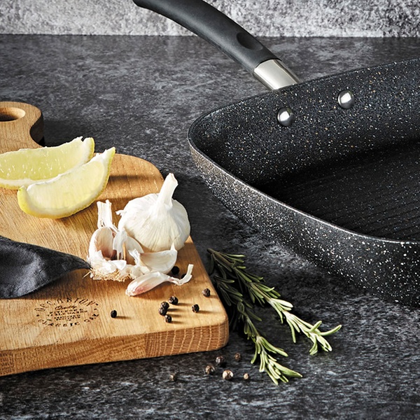 - Stone-reinforced coating requires little to no oil for creating healthier meals
