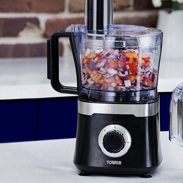 Ideal for blending, chopping, shredding or slicing, this 600W food processor fro Tower features easy to clean, removable blades
