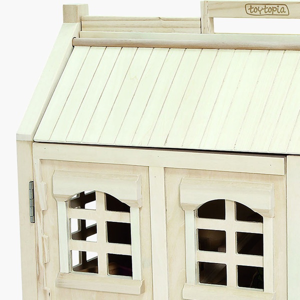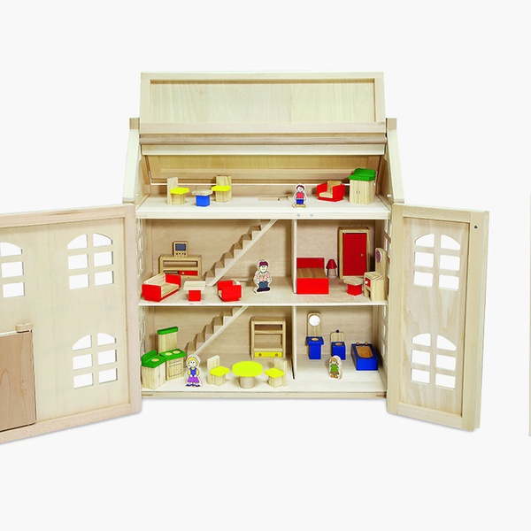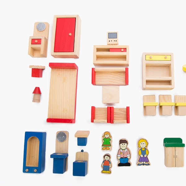- Supplied with 24 wooden painted accessories including a sofa, chairs, beds, lamps and a family of four figures