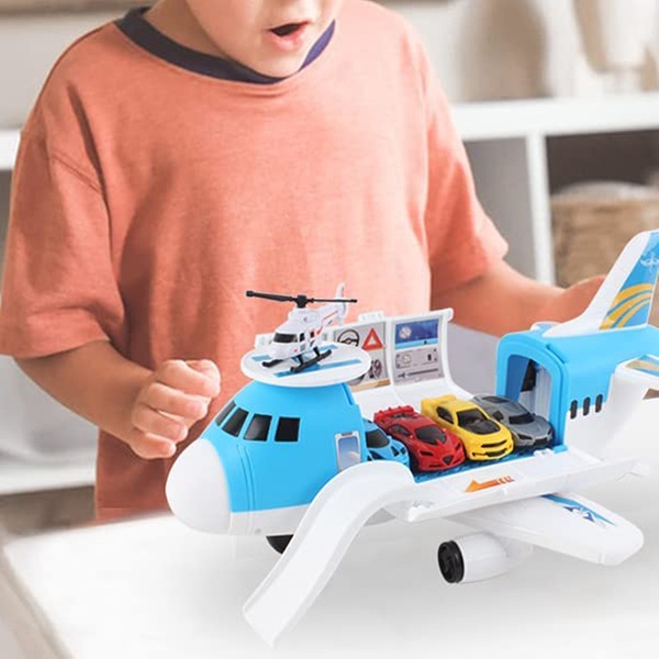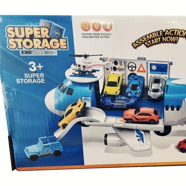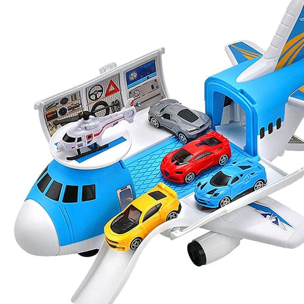 - Engaging play set with a cargo airplane, helicopter, and four cars