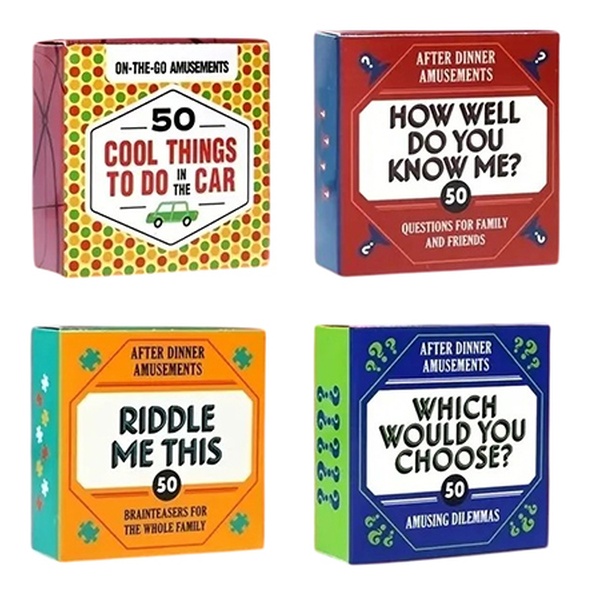 Make travelling or family nights more fun with these compact card games packed with engaging questions, tricky riddles, and conversation starters.