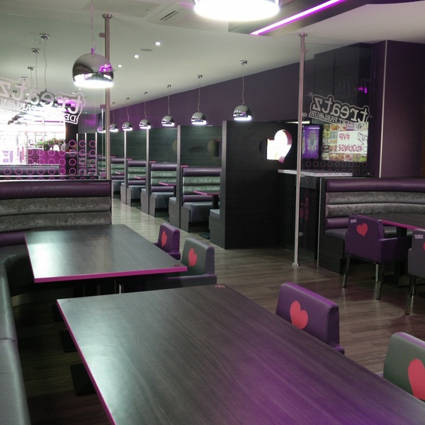 Treatz is a chain of stores and cafes specialising in all things sweet, and comprises of several branches spread across the UK. An array of waffles, ice cream, crêpes, cakes and puddings can be enjoyed with a hot drink in the chain's signature sleek, pinkish interiors.