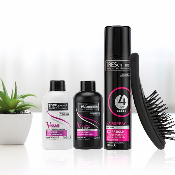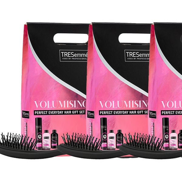 Ideal as a gift, this set included a shampoo, conditioner, hairspray and a brush - everything needed for proper hair care
