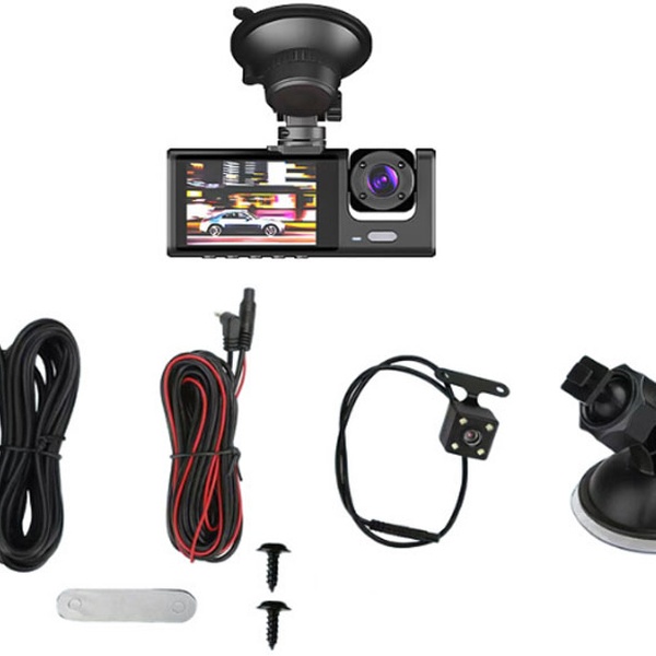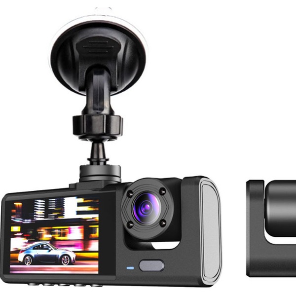- Triple camera setup includes front, rear, and interior cameras for comprehensive vehicle coverage