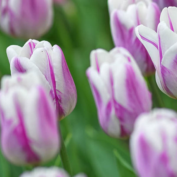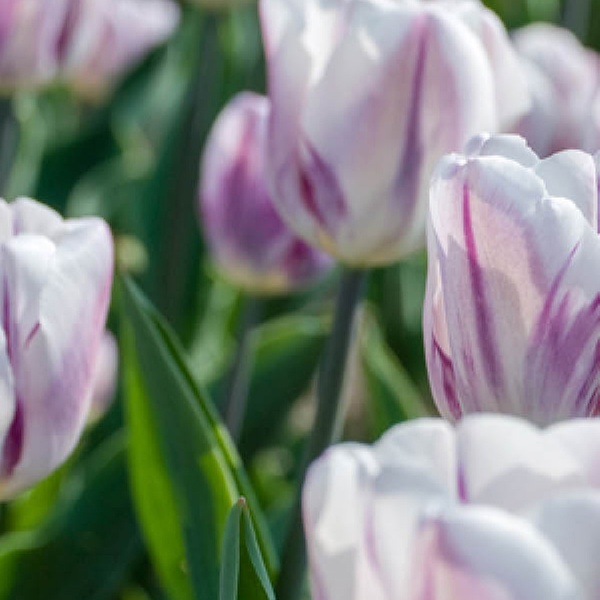 Transform any outdoor space with vibrant tulips that bloom in stunning white and deep purple, ideal for spring gardens.