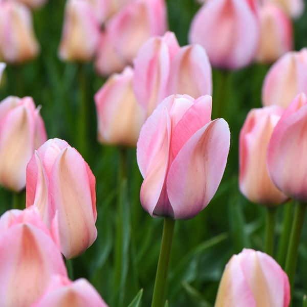 • Tulip ‘Bella Blush’ – candy-pink blooms with peachy stripes