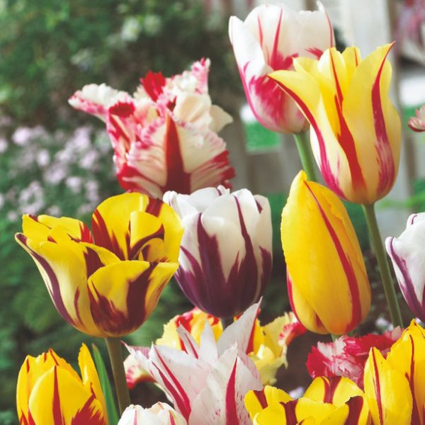 - Striking, flamed blooms featuring vibrant, contrasting colours