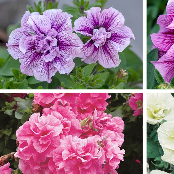- Variety of double petunias known for their trailing growth and fragrant carnation-like blooms