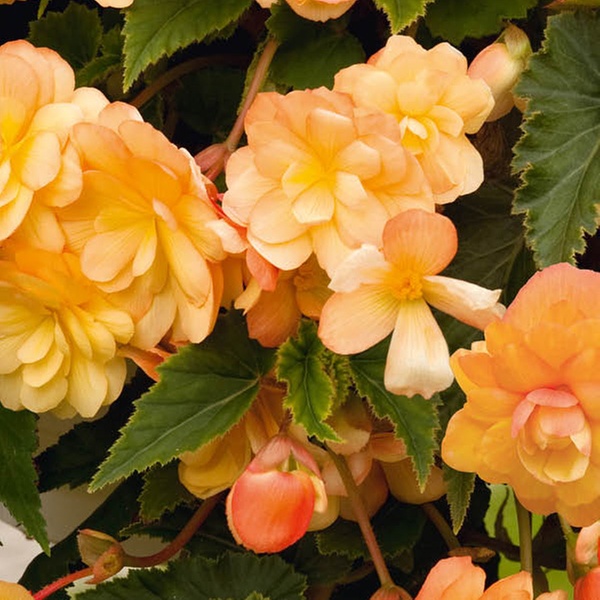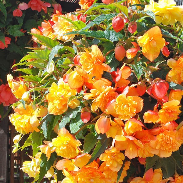 Gently trailing with vibrant apricot hues, these ready-made baskets burst with double blooms from summer to autumn