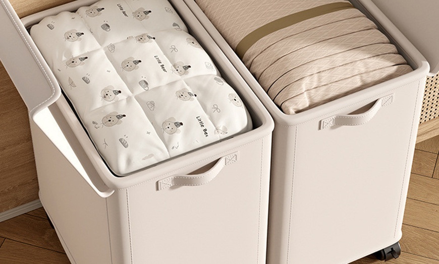 - Comes with one basket featuring a lid for added storage convenience.