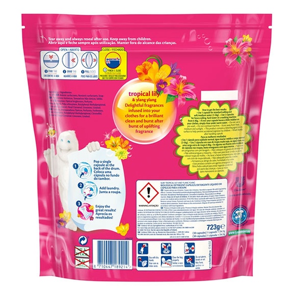 - Simply pop a capsule at the back of the washing machine’s drum and add laundry