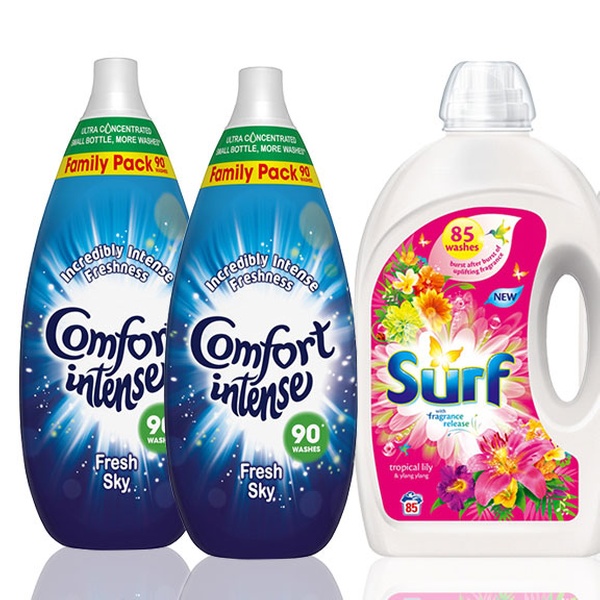 This 85-wash Surf detergent and 90 Wash comfort intense fabric conditioner can be purchased as one set or two sets