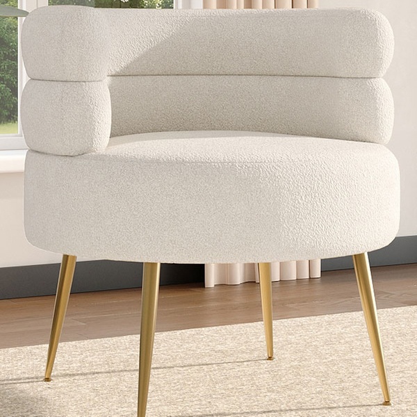 Upholstered in plush teddy fur, this barrel chair combines style and comfort, making any space feel inviting and cozy