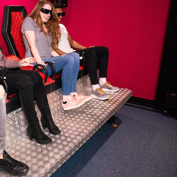 Our 5D cinema is a thrilling combination of 3D Movies, moving platforms, and real effects, including water, wind, smoke, and many more. Up to 4 people can use the cinema at any one time, which makes it a great activity for families and small groups.