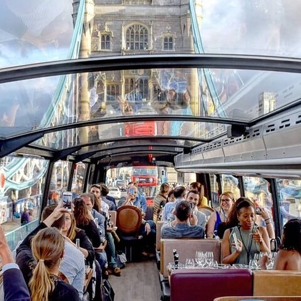 Taste the exquisite combination of British and French gastronomy during a 4 course meal on board the top deck of our luxury coach. Satisfy your senses by adding one of our carefully selected wine pairing options. Fine Dining on the move. A new way to experience London. The Bustronome is a high-end dining experience aboard a custom designed double decker bus, featuring a panoramic view of the city. A unrivaled combination of aesthetics and leisure, this luxury bus/restaurant provides an extraordinary experience, discover the most beautiful views in London while enjoying the best of its gastronomy.