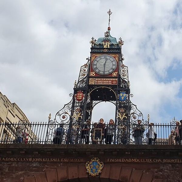 We now ascend the steps onto the famous Chester City Walls as we continue our guided tour. See the original Roman stonework, showcasing nearly 2,000 years of history, whilst passing iconic landmarks like the Eastgate Clock.