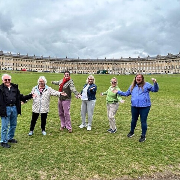 After a lovely 45-minute journey from Tetbury, we'll arrive in the beautiful city of Bath. First, we'll make a quick photo stop at the photogenic Royal Crescent. This impressive curved terrace is considered the finest example of Georgian architecture in the country! Fans of Jane Austen and Bridgerton will be delighted as The Royal Crescent is a popular filming location for Georgian period TV and film works.