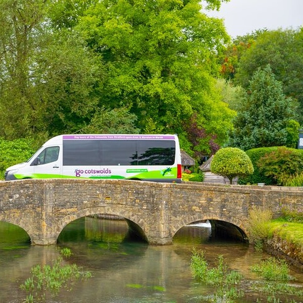 - Look out for our friendly guide in Go Cotswolds uniform, driving a large white minibus with green and purple Go Cotswolds branding—you won’t miss us!