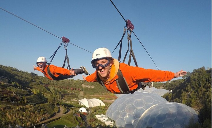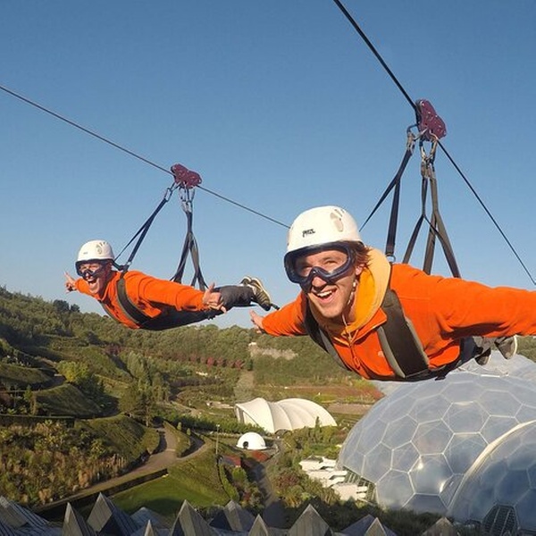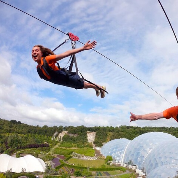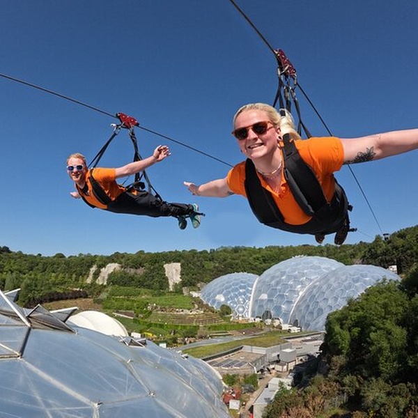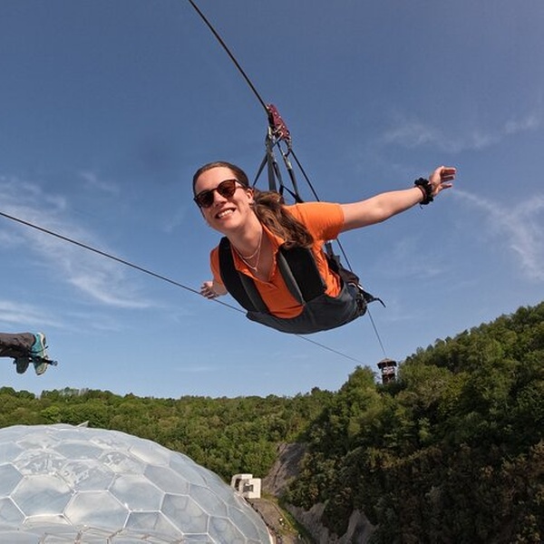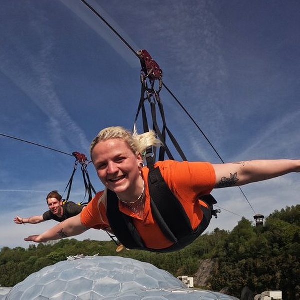 Soar over the Eden Project on England’s fastest zipline – the Skywire. Reaching speeds of up to 60mph, you’ll fly in a Superman-style harness above the world-famous biomes, taking in unbeatable views as you go. Your adventure begins with a full safety briefing and secure harness fitting from our expert team before you head up to the launch platform. Then it’s 660 metres of pure adrenaline, 96 metres above the ground. It’s a must-do experience for thrill-seekers visiting Cornwall!