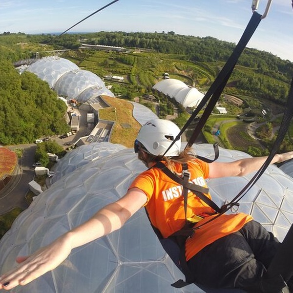 - Please arrive at our reception area, located in a large white dome about a minute’s walk from the Eden Project entrance. If arriving by car, park in the Eden car park and follow signs to the Visitor Centre—look out for the Hangloose Adventure sign just before the entrance.