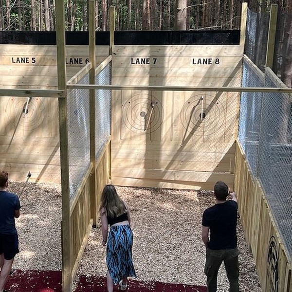 At the UK Axe Throwing Centre, we don’t just hand you an axe and point you towards a chopped-down tree stump. We take axe throwing to the next level. Set in a stunning rural location, our venue boasts eight dedicated axe-throwing lanes, each custom-built for an adrenaline-fueled experience. Whether you're a first-timer or a seasoned thrower, our lanes are designed for precision, excitement, and serious axe-throwing action. We take pride in offering a state-of-the-art setup, with expertly crafted targets and a thrilling atmosphere that makes every throw feel epic. Whether you're here for friendly competition, team-building, or just pure stress relief, we guarantee an experience you won’t forget. Forget the ordinary. Step up, take aim, and unleash your inner warrior!