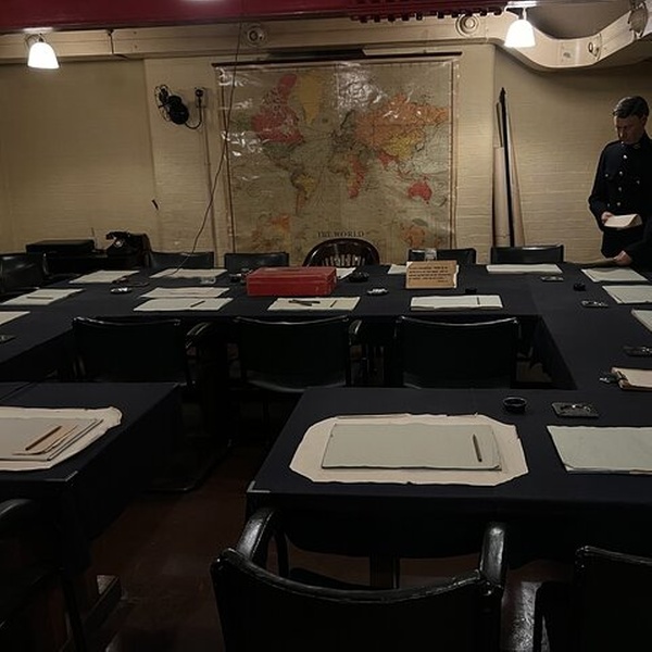 Explore the Churchill War Rooms, a Whitehall basement that was the British government's command center during World War II. Discover the secret rooms and corridors where Winston Churchill and his cabinet made crucial decisions that changed the course of history. Start your tour at the entrance to the Churchill War Rooms, where you can see the concrete slab that provided protection for the populated basement below. Visit the underground Cabinet Room from which Churchill directed the war and see how Churchill's encrypted SIGSALY telephone hotline to President Roosevelt was hidden behind a locked rest room door. Check out the Churchill Museum and learn about Churchill's life. Born into an aristocratic family at Blenheim Palace hear about Churchill's schooling at Harrow. his army and journalistic adventures in South Africa and India, his early political career then WW2 war leader and Cold War statesman. Visit the extensive gift shop filled with "Churchilliana" or the in-house cafe