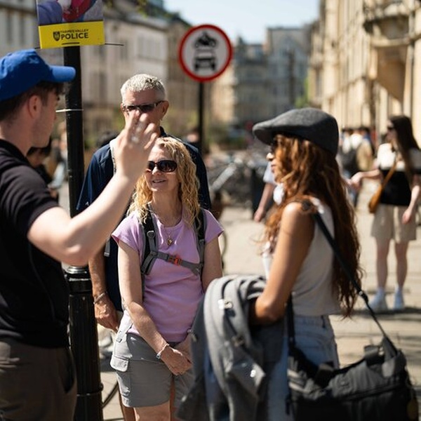 Please present your ticket to your guide at the red pillar box outside 11 Broad Street, Oxford. The guide will be wearing a blue uniform item, hat, or scarf with the Alumni Tours heraldic crest. We recommend arriving at least 5 minutes early to allow time to locate your guide and check in.