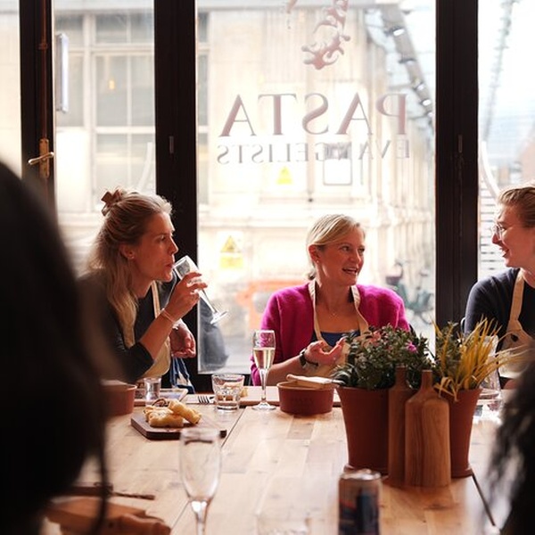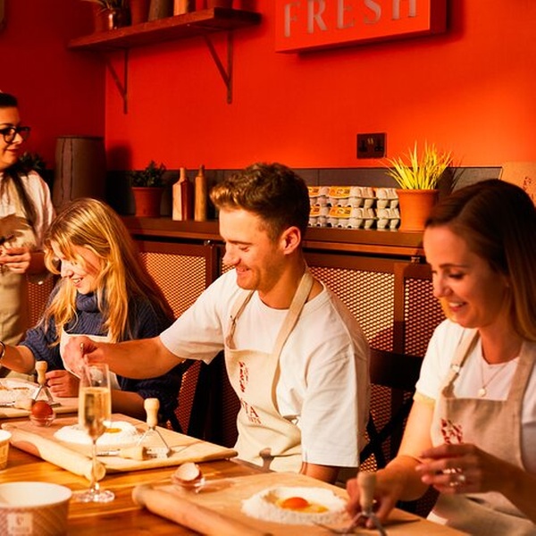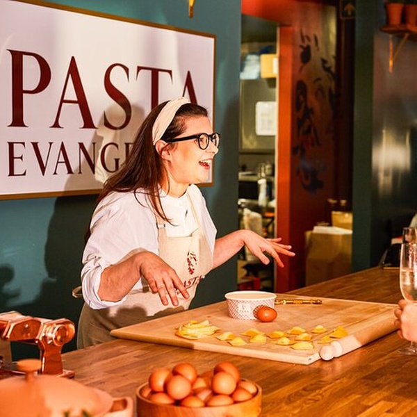 Experience the joy of pasta making with our fun-filled class, complete with unlimited Prosecco (wines, beers, and soft drinks are also available). Led by our expert Italian chefs from Pasta Evangelists, you'll learn how to craft fresh pasta from scratch while being entertained by captivating stories of Italian history and culture. After two hours of hands-on fun, your freshly made pasta will be cooked to perfection and served with a luxurious sauce from the Pasta Evangelists kitchen. You'll then sit down to enjoy your creations together with your classmates. • Your ticket includes antipasti on arrival, fresh pasta to enjoy, and unlimited Prosecco for a fully immersive meal experience. • Pasta Evangelists is located in the heart of the West End a 2 min walk from Tottenham Crt Rd Central and Elizabeth Line station. • We can accommodate most dietary requirements—just let your chef know on arrival.