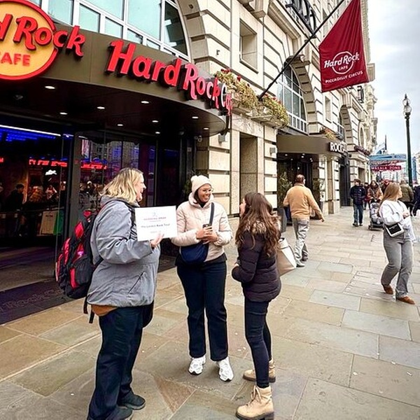 - Your guide will be waiting outside the main entrance. Note this is the Hard Rock Cafe in Piccadilly Circus next to Horses of Helios fountain on Haymarket and NOT the one on Old Park Lane, Hyde Park Corner.