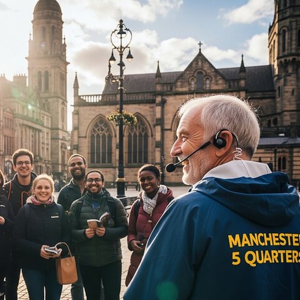 Discover the vibrant essence of Manchester on the '5 Quarters' walking tour, where history seamlessly intertwines with modern creativity. This engaging journey covers five unique quarters, each revealing a chapter of Manchester’s rich narrative—from its Roman origins to the heart of the Industrial Revolution, and its contemporary artistic scene. Led by expert local guides, you’ll uncover hidden gems and captivating stories that you won't find in any guidebook, ensuring a deeper understanding of the city’s character. Ideal for both locals and visitors, this tour promises an enriching experience for all ages. - Duration: Approximately 2 hours and 15 minutes, including a short comfort break. - Group size limited to 20 participants, ensuring personalised attention. - Outdoor tour with stops at significant landmarks, focusing on historical insights without indoor access. - Headsets are provided for clear communication during the tour, enhancing the overall experience.