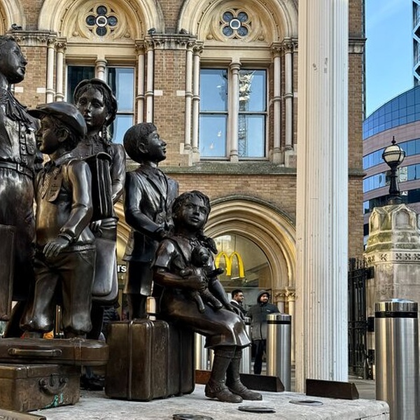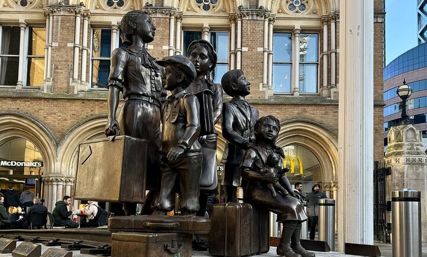 The tour ends at the Kindertransport Memorial outside Liverpool Street Station
