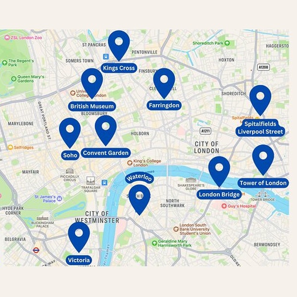 - Spitalfields / Liverpool Street - Leave your luggage at the reception of the Premier Inn