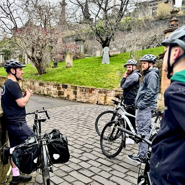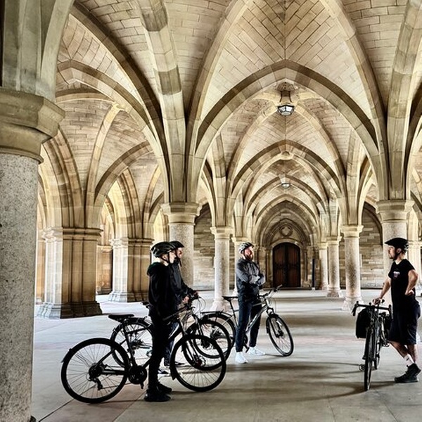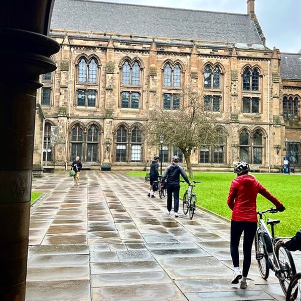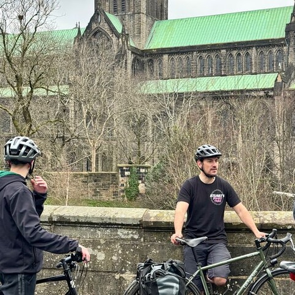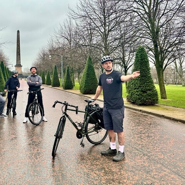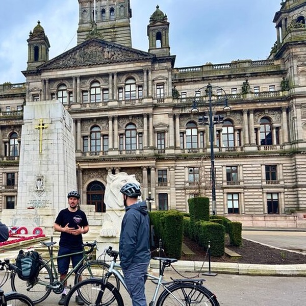 Join me on a journey through Glasgow's historic and folkloric past to its vibrant and modern present. A city of stunning architecture, rich varied culture and a birthplace of Scottish ideas. By using bicycles we can start in the city centre and ride to the farther reaches of Scotlands largest city. Utilising its excellent network of bike lanes and quiet roads we can travel through gorgeous green spaces, stunning vistas, architectural wonders and, indeed, time itself. Starting in the heart of the city we will travel a 12 mile/20km loop visiting a myriad of interesting locations. We will visit well known highlights of the city as well as lesser known points of incredible interest and gain a deeper understanding of what makes Glasgow the wonderful and eclectic place it is today. We will discuss ancient folklore, local heroes, triumphs, tragedies, art, sport, invention and science. Getting to know each other as well as the city and country that surrounds us.