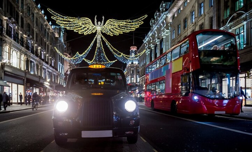 Experience London's yearly Christmas extravaganza from the comfort of an iconic London taxi with this guided tour for up to 6 people. See the sights in heated comfort with the taxi's panoramic glass roof. Find out more about the lights and sights, or choose to chill with some holiday tunes.Be picked up at your accommodation in central London and hop aboard a cozy cab. Embark on an enchanting tour to see the city's beautiful Christmas displays. Along the way, admire famous landmarks like the Tower of London, the London Eye, and the Houses of Parliament.
