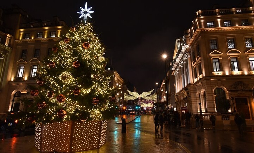 Our first destination Covent Garden market is famous for street performers, boutique market stalls, and Christmas decorations. While exploring Covent Garden market you have time to take photos, buy Christmas gifts, and listen to street performers. During this time your guide will also explain the history of Covent Garden, from its origins as land belonging to the Church, to the modern vibrant marketplace you see today.