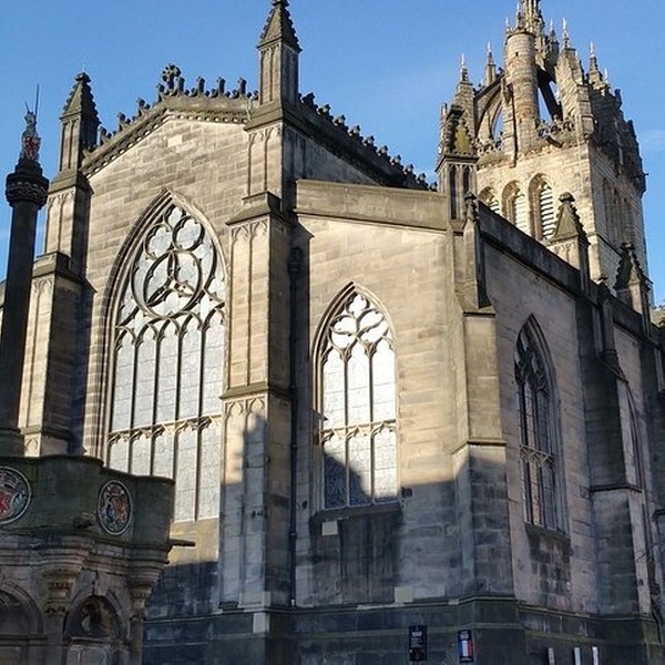 See the magnificent stained-glass windows from the outside of the High Kirk of Edinburgh, St Giles’ Cathedral, a prime example of Gothic architecture;
