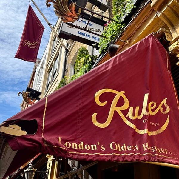 - Meet your guide where James Street meets the Covent Garden Piazza. Your guide will be holding an orange umbrella. Please adhere to Rules Restaurant dress code of avoiding shorts, joggers, tracksuits, or sportswear.