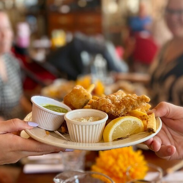 - After your fish and chips with a half pint you are free to enjoy everything the Trafalgar Tavern has to offer with only a short walk back to the Cutty Sark