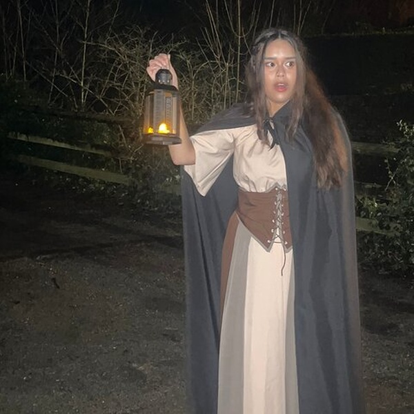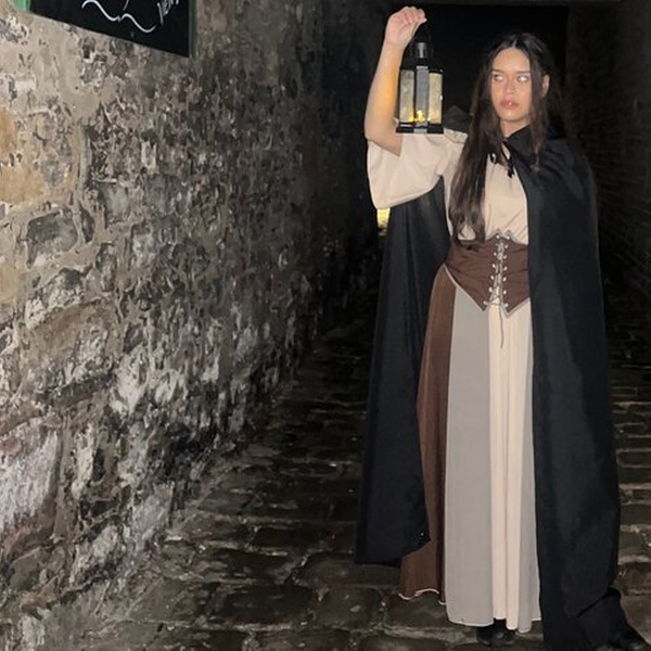 Meet your ghoulish guide - The Butcher - by the castle gates. Get acquainted as she regales you with tales about the family that haunts the castle.