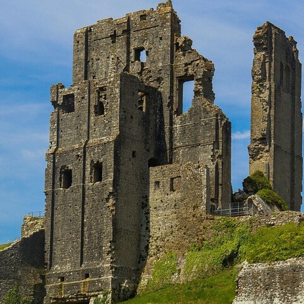 Corfe Castle, located in the village of Corfe Castle in Dorset, England, is a dramatic ruin rich with history. Built by William the Conqueror in the 11th century, it served as a royal fortress for centuries. Perched on a hilltop, it offers stunning views of the surrounding countryside. The castle was partially destroyed during the English Civil War but remains a striking landmark. Today, it's a popular destination managed by the National Trust, captivating visitors with its medieval charm and scenic beauty.