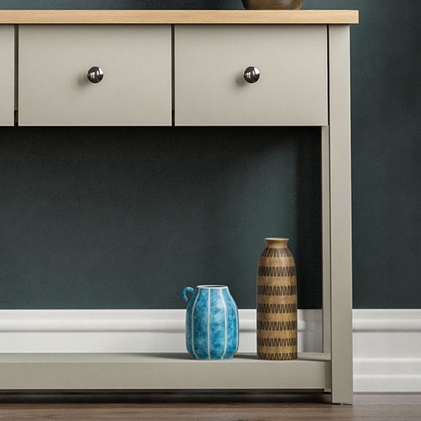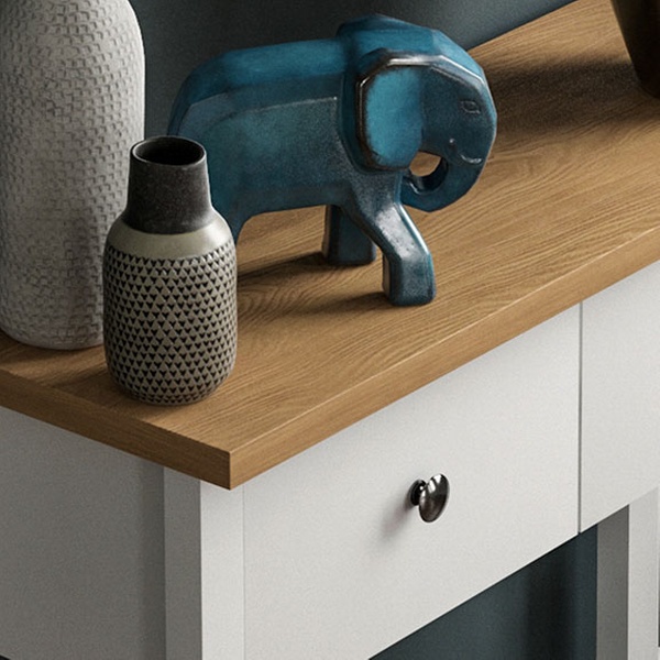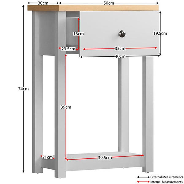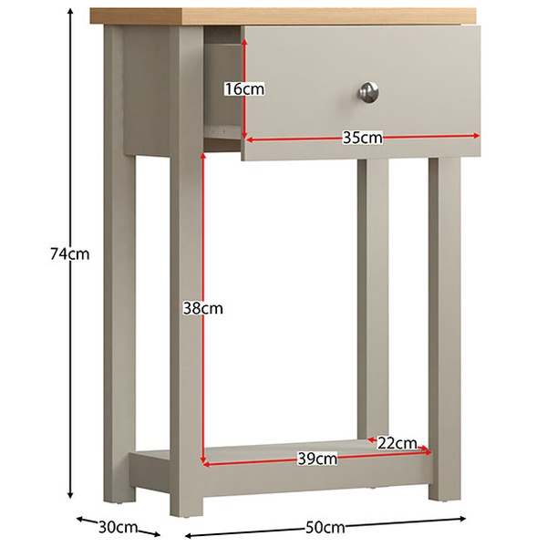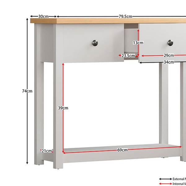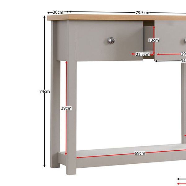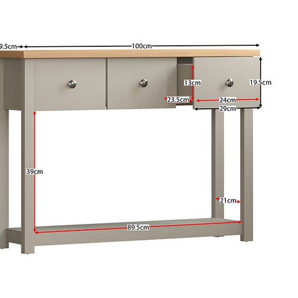 Three-drawer console table: 74cm (H) x 100cm (W) x 30cm (D)