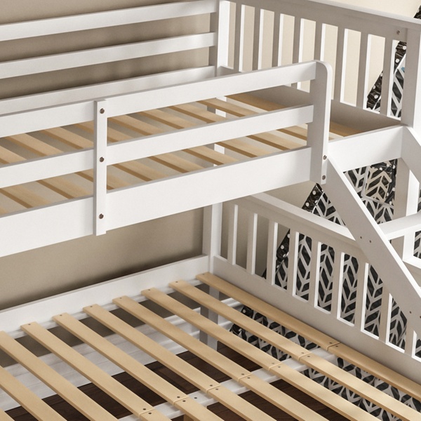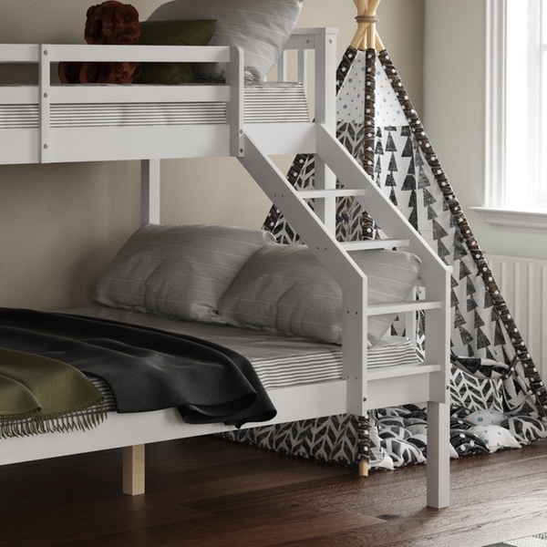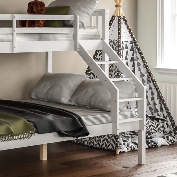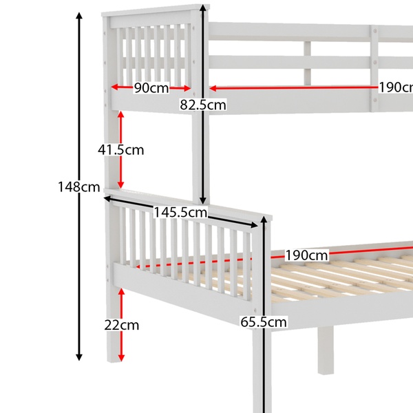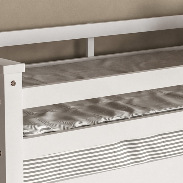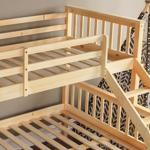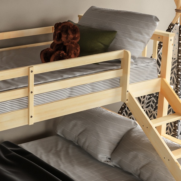 Accommodating one person at the top tier and one person at the bottom tier, this bunk bed can be an ideal solution for a limited space rooms