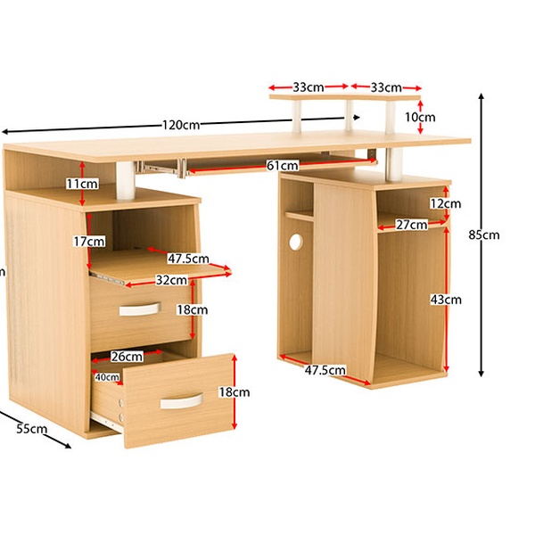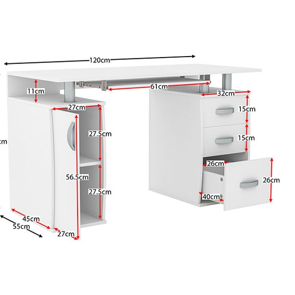 - Internal larger drawers: 10cm (H) x 26cm (W) x 40cm (D)
