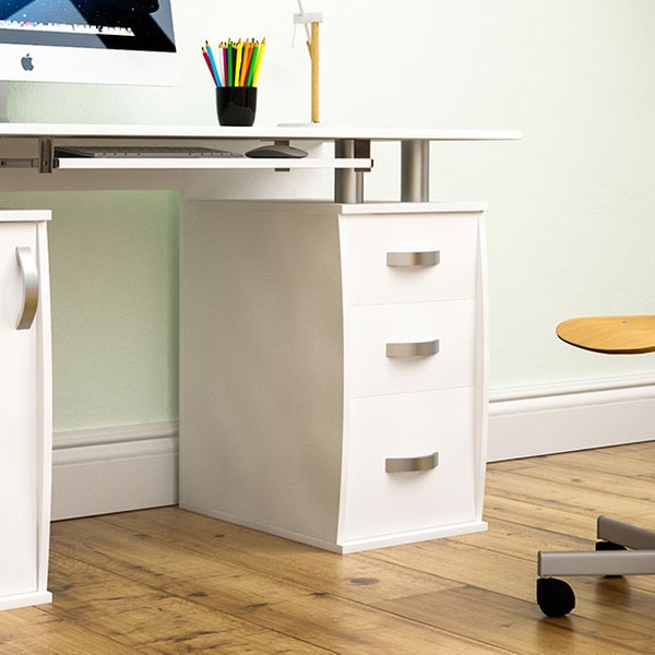 Featuring generously sized storage options, this desk can make a home office or studying area look more professional and organised