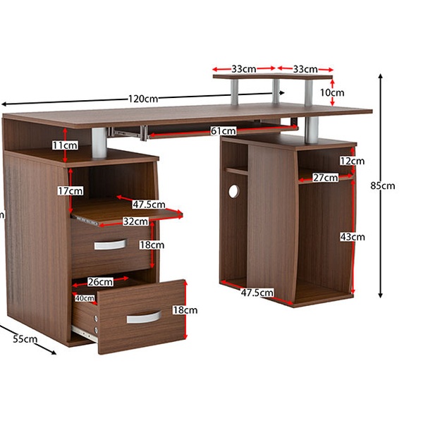 - Internal drawers: 9.7cm (H) x 32cm (W) x 40cm (D)