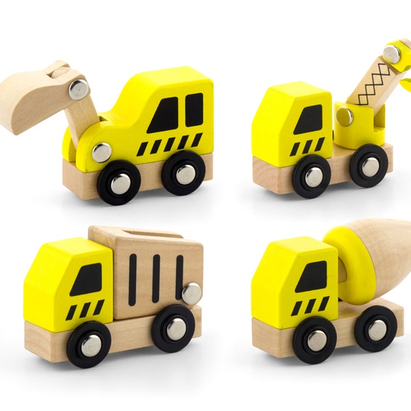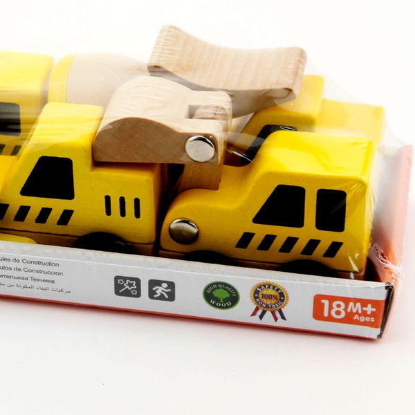 Designed to help kids learn about different construction techniques, these wooden vehicles feature movable parts