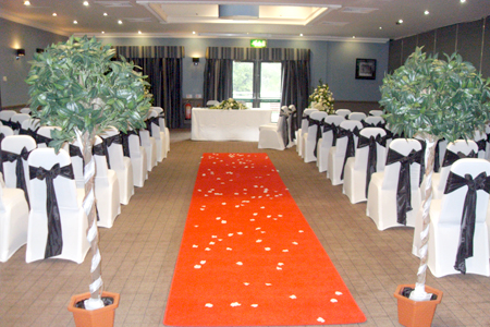 The red carpet awaits for happy couples at The Village Hotel. Those choosing the wedding day package can exchange vows in one of the function rooms, before celebrating with sparkling wine in a drinks reception with their 50 guests. They can then sit down for a three-course meal with wine, with dishes such as chicken liver pate, pan-fried fillet of seabass and vanilla cream-filled profiteroles to choose from. The meal will be finished with a glass of sparkling wine to toast the speeches. The evening party will carry on in the same room, and be fuelled by bacon sandwiches for 75 guests.